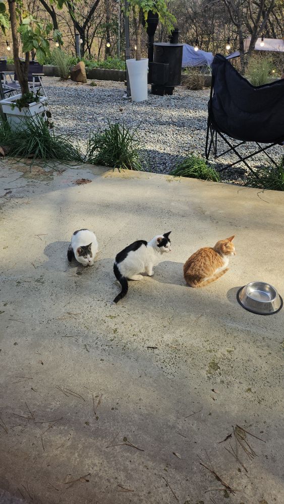 경계하면서 밥달라고 오는 새끼고양이.. ㅎㅎ
