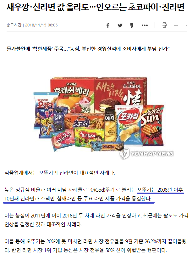 농심의 부진한 경영실적은 소비자에게 전가.....