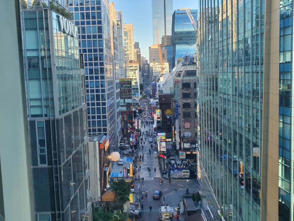 아래만 지나다닐때는 몰랐는데 위에서보니 높은빌딩들로 둘러쌓여있네요~